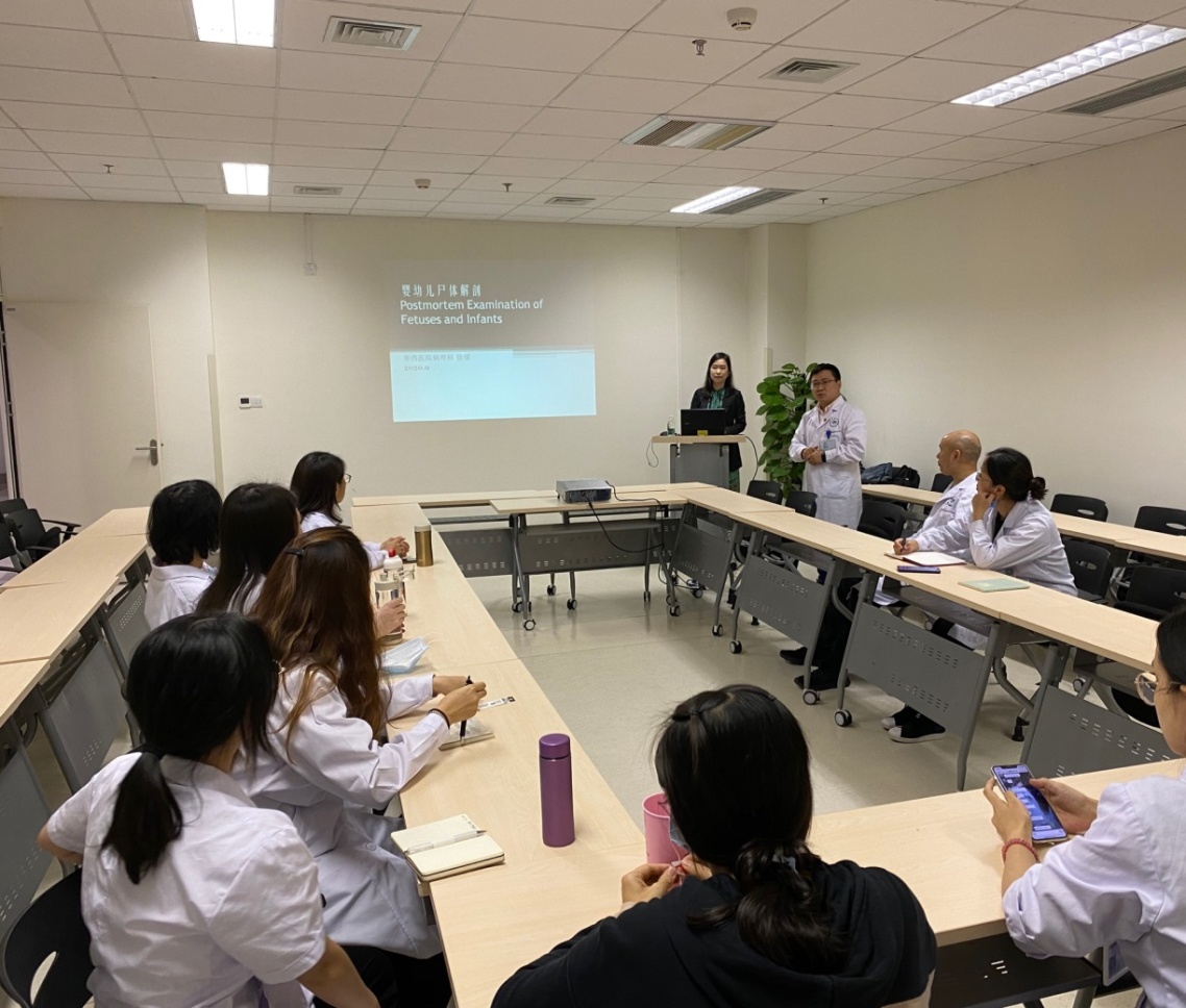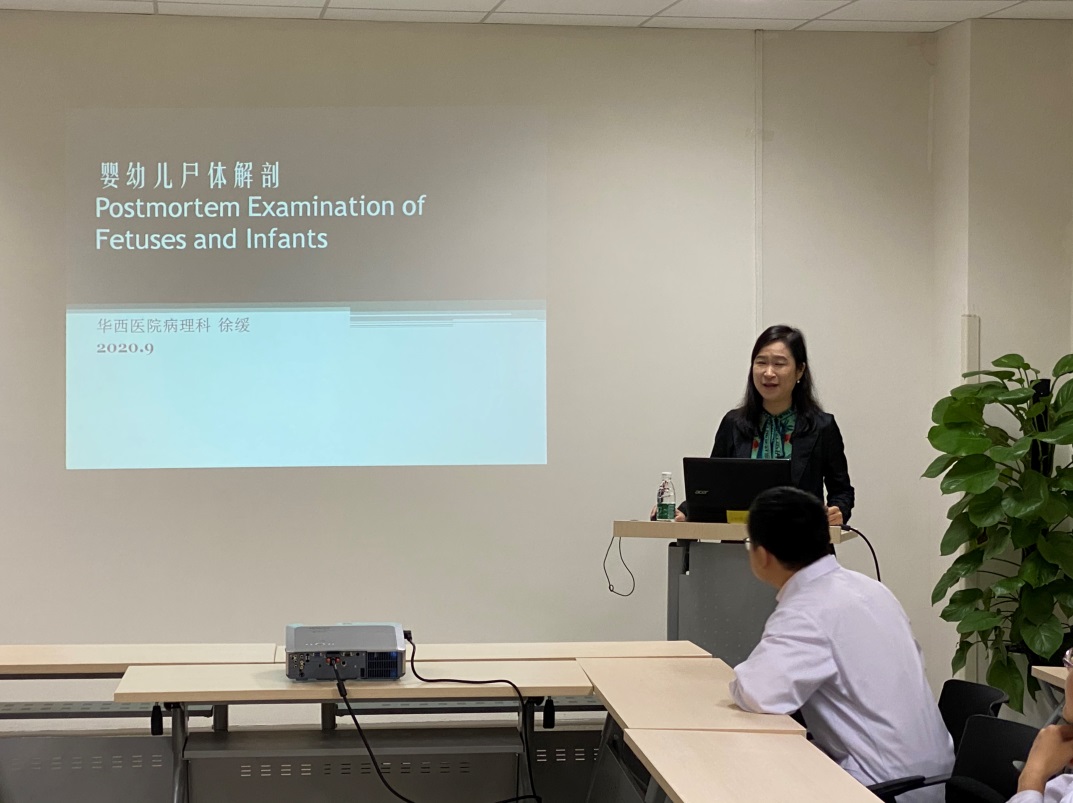 为推进病理科尸检业务发展,2020年9月25日晚,我科特邀请华西医院病理科徐缓老师进行“婴幼儿尸体解剖”专题学术讲座。讲座由王巍主任主持,病理科全体医师参加。徐缓老师分享了她多年来在婴幼儿尸体解剖方面的经验,对婴幼儿尸检流程和注意事项进行了详细讲解,并就具体案例进行了深入浅出的分析,与会者纷纷表示受益匪浅并与徐缓老师进行了深入的讨论。