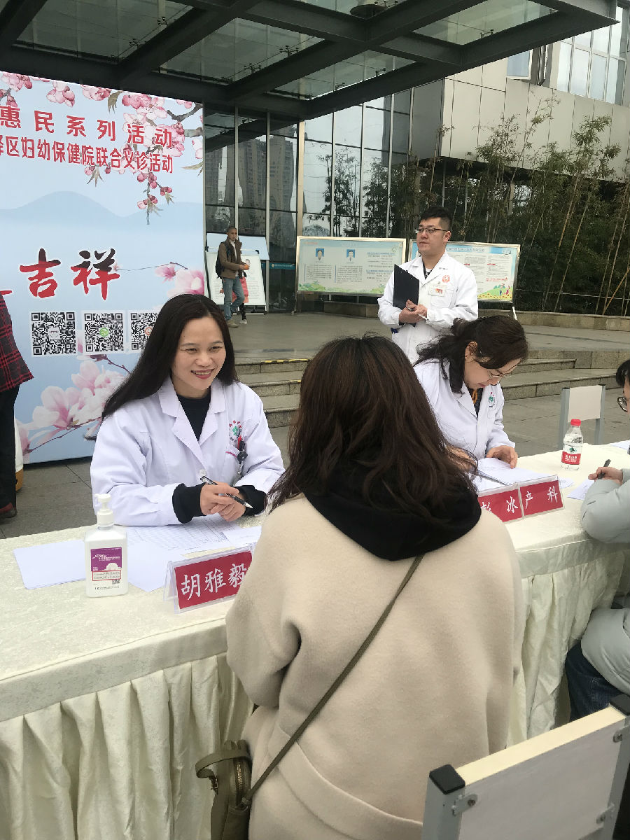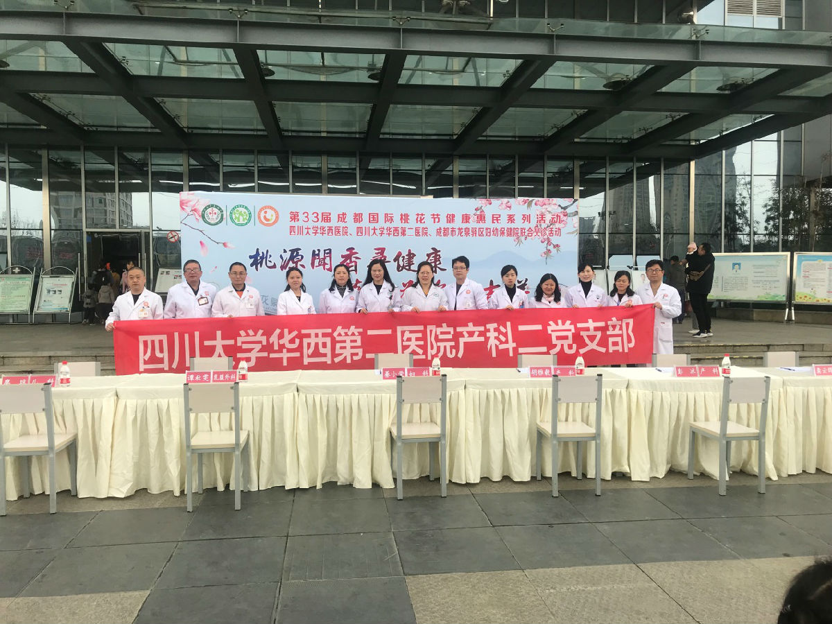 在第33届成都国际桃花节盛大举办之际,为响应党的十九大提出的“健康中国”战略,关注民生,更好的服务群众,2019年3月24日产科二党支部胡雅毅书记、党员模范代表彭冰教授携同四川大学华西医院乳腺外科1名,四川大学华西第二医院儿科3名、妇科1名组成团队到龙泉驿区妇幼保健院义诊。
