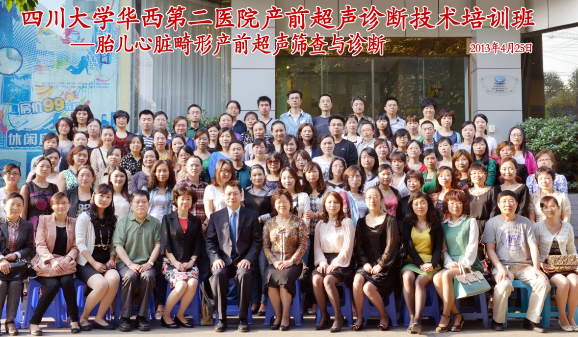 近几年来,胎儿心脏畸形已成为产前超声检出率最高的畸形,在活产婴中先心病发病率仍高达8‰。产前对胎儿心脏畸形诊断,早期临床干预,减少先心病患儿的出生,改善先心病胎儿的预后,是目前产科超声领域普遍关注的热点问题。由四川大学华西第二医院超声科主办的国家级继续教育项目“产前诊断超声技术培训班暨胎儿心脏畸形产前超声筛查与诊断培训班” 于2013年4月25日正式开课,院长母得志教授致欢迎词。本届培训班为期三天,主要面向全国各级医院超声科医师,针对胎儿超声心动图在胎儿先天性心脏病产前筛查中的应用展开多学科的交流,达到提高超声专业理论水平、拓展临床专业知识和操作技能的目的,为全国特别是西南地区各级医院胎儿超声心动图筛查的进一步开展提供一个交流平台。