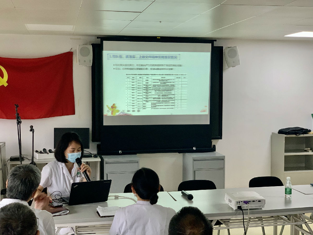 随后,医学遗传科/产前诊断中心科室主任/党支部书记刘珊玲教授代表科室就支部及科室党风廉政工作进行了汇报,就贯彻落实医院全面从严治党任务情况、“三会一课”党建工作常态工作、加强业务领域教育监理情况、强化规章制度建设及执行情况、加强科室行风建设情况、个人廉洁情况等方面进行了汇报;表示对科室制度逐渐并完善形成常态、党风廉政和业务工作结合等方面进行加强。