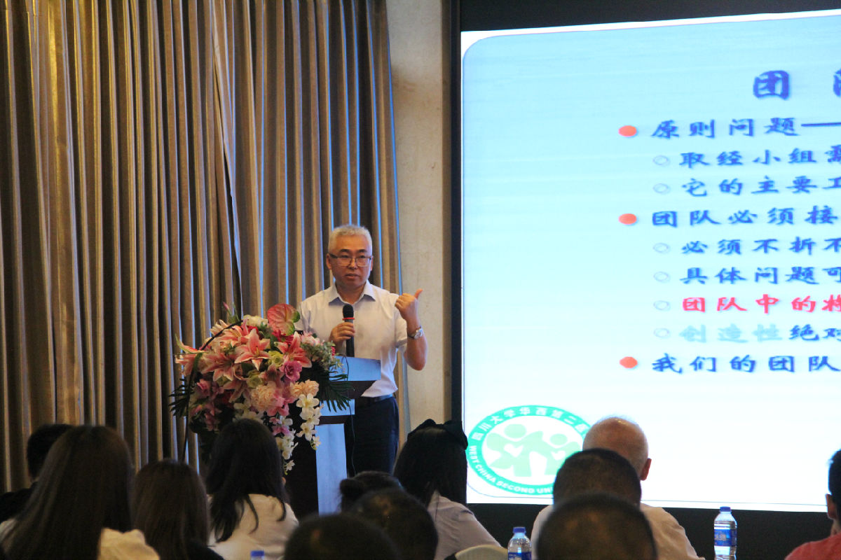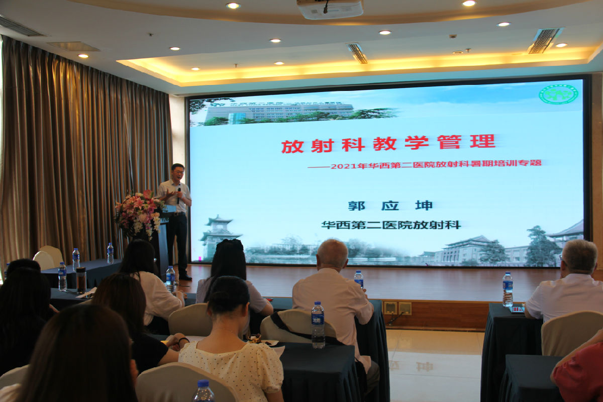 随后,郭应坤副主任开展了题为《放射科教学规划及管理思考》的专题讲座,主要内容包括放射科教学规划及管理,重点讲解了放射科规范化培训细则、学生的日常管理、考核制度和导师职责等方面内容,强调要通过完善管理制度以持续加强规范化培训学员专业知识和技能培训。
