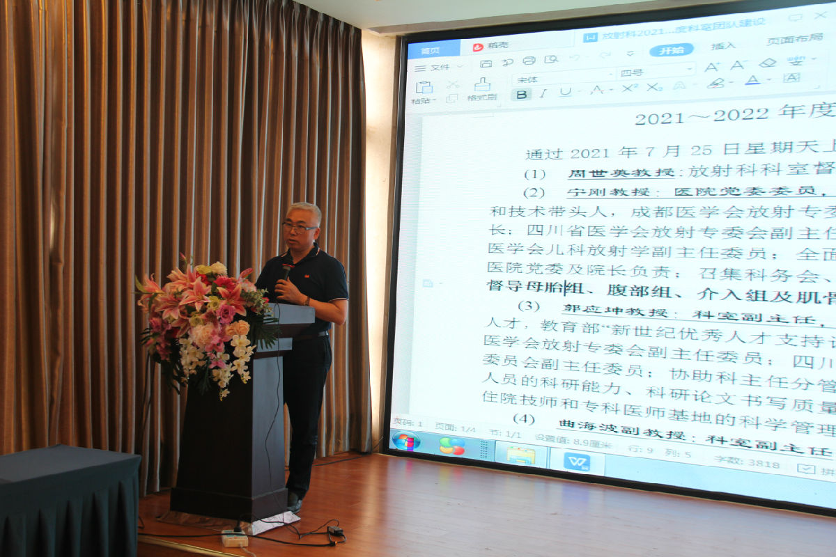 首先,放射科党支部书记、科主任宁刚教授以《坚定文化自信,建设科室文化,实现“十四五”学科建设目标》为题作专题讲座,回顾了科室人员及设备发展历程,重点介绍了医院及文化精神、学科建设和人才培养现状、个人能力及绩效评价机制以及“十四五”学科建设方案思路等。宁刚主任要求全体员工要坚持文化自信并践行文化自觉,在“十四五”期间不断弘扬医院文化精髓,加强科室文化建设和学科平台建设,打造出全新的开拓型、研究型、有文化、有灵魂的妇儿影像团队。