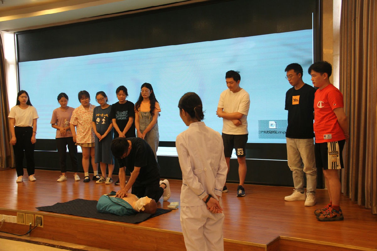 王韵副护士长进行了《放射科院感防控及急救培训》专题讲解,围绕医院感染预防实施要点、七步洗手法、职业防护、医疗垃圾分类及对比剂不良反应急救等方面的内容进行了详细介绍。青年护士张慧现场进行了心肺复苏技能的教学演示,并指导了新进的影像诊断规范化培训学员逐一完成了徒手心肺复苏技术的演练。