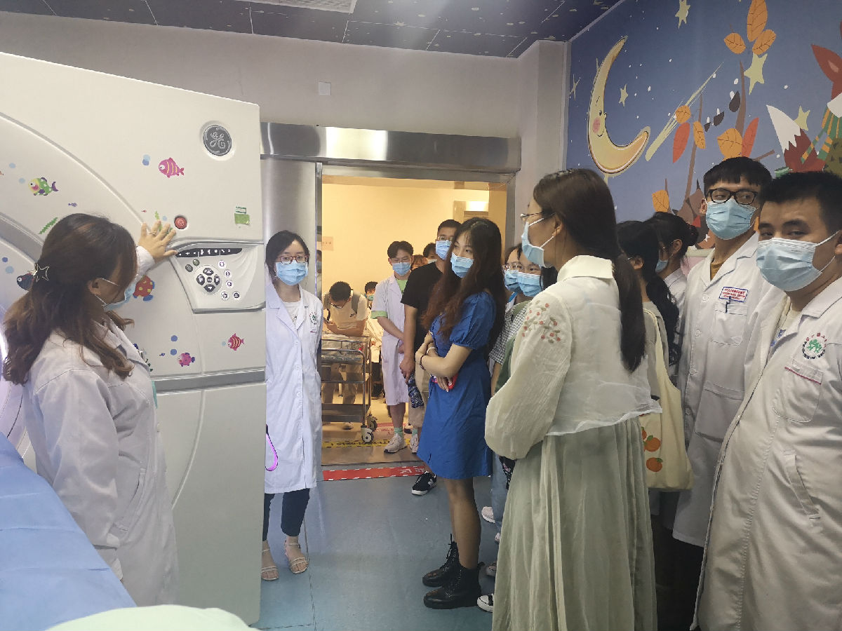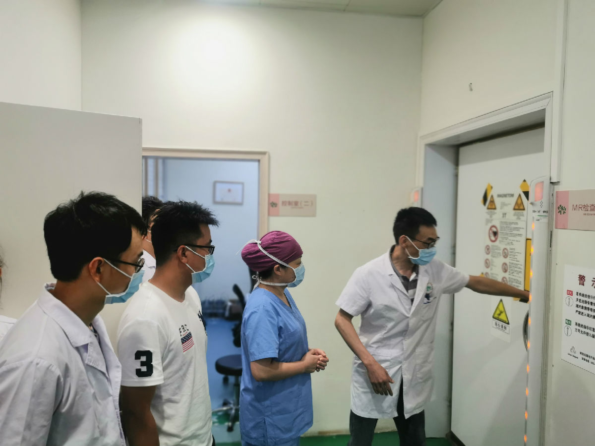培训结束,由李学胜总技师长和鲍莉技师长分别带队,到放射科的DR检查室、CT检查室及MRI检查室进行现场观摩,熟悉射线装置上的应急开关,磁共振设备失超开关的位置。