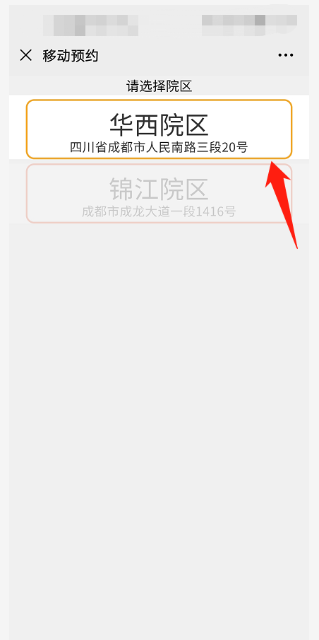 7、选择项目,点击开始预约; | 8、选择院区; |