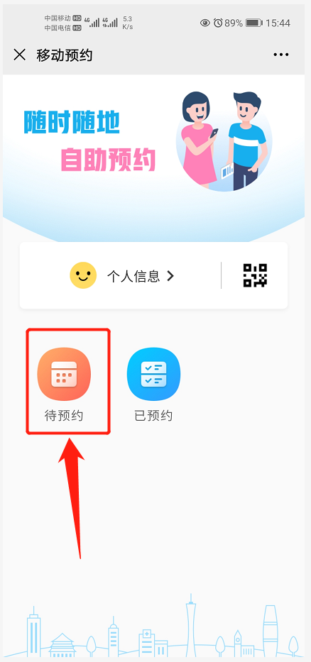 5、点击患者名字的就诊卡; | 6、选择待预约; |