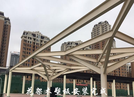 成龙路口层采光顶不锈钢水槽、铝板安装完成;
