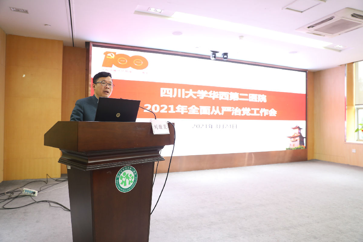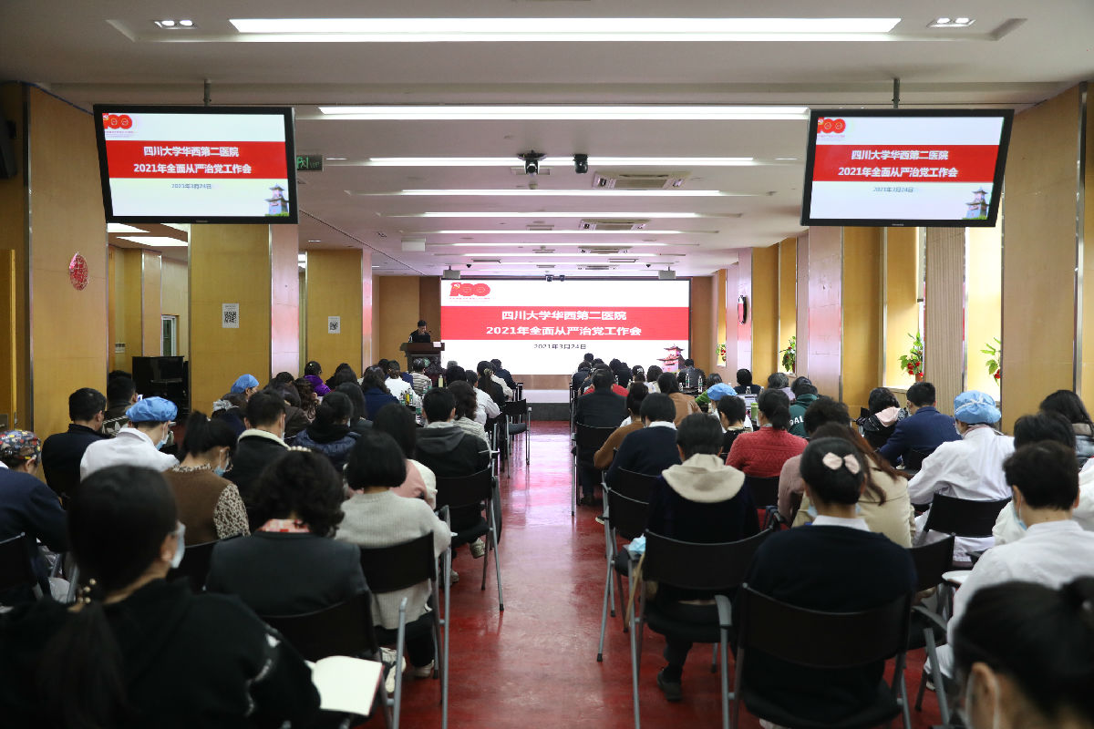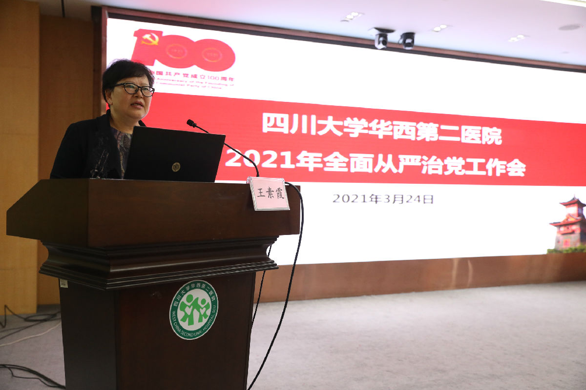3月24日下午,医院召开2021年全面从严治党工作会。会议设立华西院区会场和锦江院区会场。医院党委书记王素霞、院长刘瀚旻、医院党委副书记/纪委书记王红静等在院院领导、两委委员、院长助理、专职组织员、各部门/科室正副主任、各党支部书记、各科室正副护士长、各民主党派负责人、市以上人大代表、政协委员、各党支部纪检委员、党群部门工作人员共200余人参加会议,刘瀚旻院长主持会议。会议总结了医院2020年全面从严治党工作,部署安排了2021年重点任务。