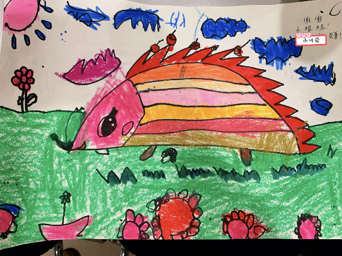 2021年11月10日上午,在锦江院区儿科中医门诊诊断室发生了温暖的一幕,一位小小的患者,在医生、医助看诊结束的间隙,进入到诊断室,双手高高举起两幅亲手画的画,要送给慈祥的刘爷爷和温柔的助理小姐姐,看到小朋友,刘小凡医生和李楠医助,就想起来这是在门诊接诊的一位患儿,小朋友当时对看病本能的有些抗拒,刘小凡医生耐心接诊、仔细询问病情,李楠医助也不断用微笑缓解小朋友的紧张,很顺利地完成了接诊,并详细的给家属交代了下一步流程,回家用药之后小朋友的病情得到明显缓解,于是她亲自画了两幅画,并在刘小凡医生门诊时和家人们一起带过来,郑重的向刘老师医生和李楠医助表示感谢!