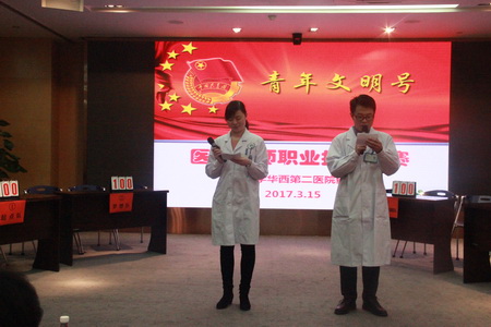 2017年3月15日,药学部青年文明号主办了医院药师职业技能竞赛。医院党委王素霞书记、王红静副书记、李永莲主任与团委陈莉娟书记参会并担任评委。