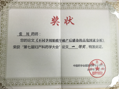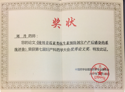 本次大会共收到会议论文68篇,案例分析15篇,经评审,分别选出5篇优秀论文和5个案例分析进行汇报评比。我院囊括两项一等奖,张伶俐教授和王晓东教授指导张川药师撰写的《不同孕周胎膜早破抗菌药物合理使用探索及产后感染的高危因素分析》获优秀论文评比一等奖;张伶俐教授和李金科副教授指导张川药师撰写的《盐酸利托君引起粒细胞缺乏伴发热的循证案例分析》获案例分析汇报评比一等奖。刘丹药师的论文《使用青霉素类抗生素预防剖宫产产后感染的系统评价》获优秀论文奖。