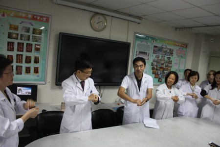 首先刘瀚旻院长强调产科是一个迎接新生命的科室,也是一个特殊科室,孕产妇及新生儿由于生理原因抵抗力较低,院感的防控尤为重要,今年是开展“全球洗手日”的第10个年头,借这个特别的日子,开展手卫生宣传,旨在加强院感防控及手卫生意识,严格执行手卫生,努力提高手卫生的正确率及依从性,从而减少院内交叉感染,杜绝院感暴发。然后牛晓宇副院长也表示各位医护同仁要不断提高院感防控及手卫生意识,为我们大家营造一个安全环境努力。随后李萍老师带领全体医护人员练习手卫生方法、邓建军主任组织大家进行了手卫生知识有奖问答,现场气氛十分活跃。最后产科主任刘兴会及儿童感染科主任朱渝均代表医护同仁们表达了,对这种既寓教于乐又提高了对手卫生兴趣感的宣传活动非常感兴趣。