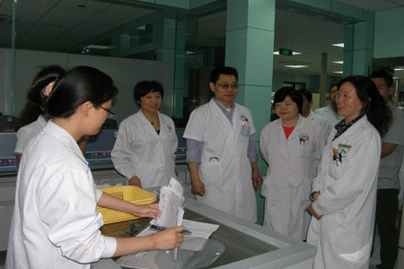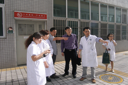 2012年4月26日8点,母得志院长、郄明蓉副院长携医务部、后勤、保卫、设备和院办公室等相关职能部门领导,在检验科江主任、李主任等的陪同下到刚完成搬迁后的新门急诊检验科进行了现场办公。院领导对检验科全体员工利用周末休息时间,在不中断检测、不影响临床诊疗工作的情况下,快速、安全和顺利地完成了整个门急诊检验科和血库的搬迁工作表示赞赏和感谢,对检验科顾全大局、支持PICU的建设和医院整体发展的态度也予以了肯定。同时门急诊检验科的搬迁也彻底为医院消除了一个重大的安全隐患,因为随着医院就诊人数的迅猛增加,以及检验技术进步所导致的大型检验设备的不断增加,原门急诊检验科所需求的楼层地面承载重量已远远超出了当初设计的承重能力,如果不搬迁,医院将存在发生重大安全事故的风险。