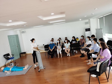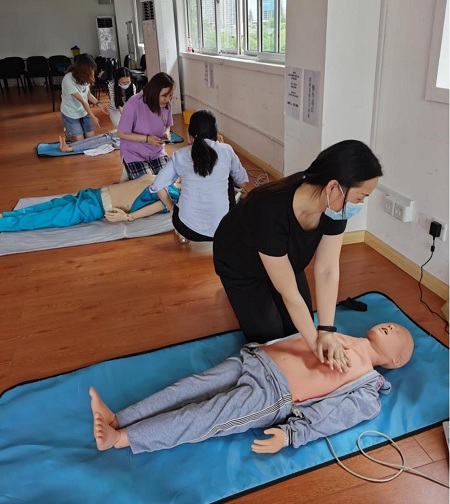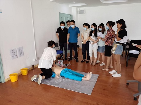 本次培训教师由具有丰富临床经验的赖思丹老师担任,赖老师从判断意识和呼吸、颈动脉搏动、呼救,实施胸外按压、开放气道和人工通气、CPR(30:2)等操作流程做了详细讲解和演示。通过学习和实际操作,参训人员有效掌握了心肺复苏操作规范和技能。
