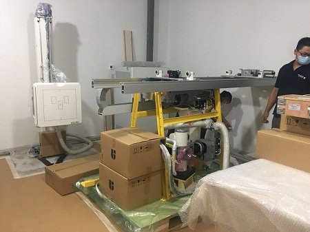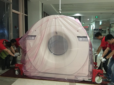 又经过3个小时奋斗,在医学装备部、联影公司和物流公司的共同协作下终于在9月5日凌晨4点把悬吊式数字放射成像系统、数字乳腺X射线摄影系统、螺旋CT全部顺利运送到放射科的设备机房。这3台设备将于9月5日下午公司开始进行对大放设备的安装。