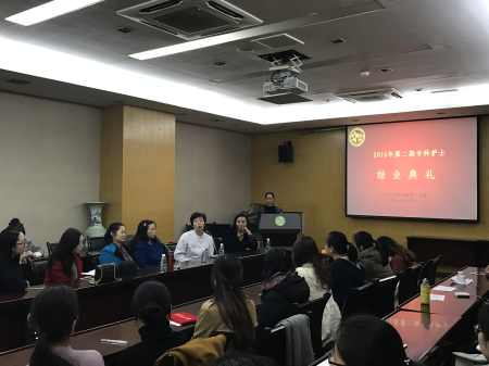 12月9日下午4点,2016年第二期专科护士结业典礼座谈会在研究院四楼会议室召开。教务部黄莉君主任、护理部彭文涛副主任、新生儿科护士长苏绍玉老师和产科任建华老师以及2016年第二期全体专科护士培训学员,近60人参加了座谈会。