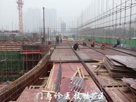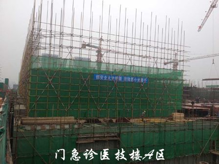 3. 捡底及垫层已全部完成,基础防水及保护层已全部完成,筏板及地下室钢筋绑扎已完成85000㎡;门急诊医技施工至一层墙柱、二层梁板,部分完成浇筑;第一住院楼施工至三层墙柱、四层梁板,已浇筑完成;混凝土浇筑总量约76000m³,其中门急诊医技楼C6区6850 m³、D4区550 m³;第一住院楼E1区500 m³、E2区570 m³、E3区1200 m³;紫罗兰路入口层E5区900 m³、E6区1100 m³;