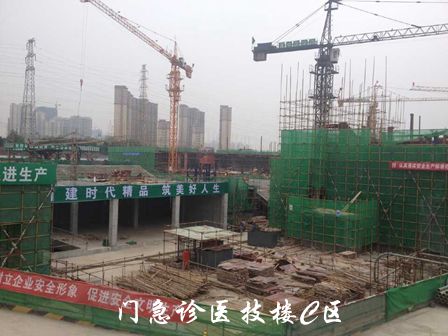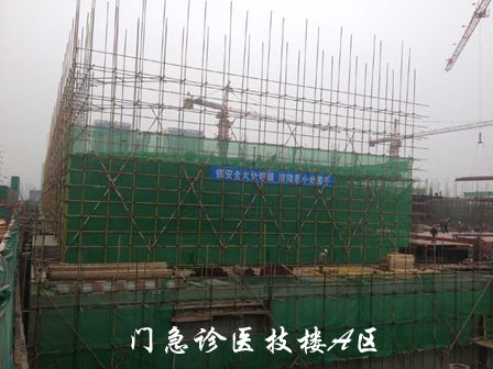 3. 捡底及垫层已完成34000㎡,铺设防水及保护层已完成34000㎡,筏板及地下室钢筋绑扎已完成80000㎡,混凝土浇筑总量约70000m³,其中砼浇注门急诊医技楼A3区2850 m³、D5区800 m³;第一住院楼E3区1500 m³;紫罗兰路入口层E5区1400 m³、E6区1600 m³;