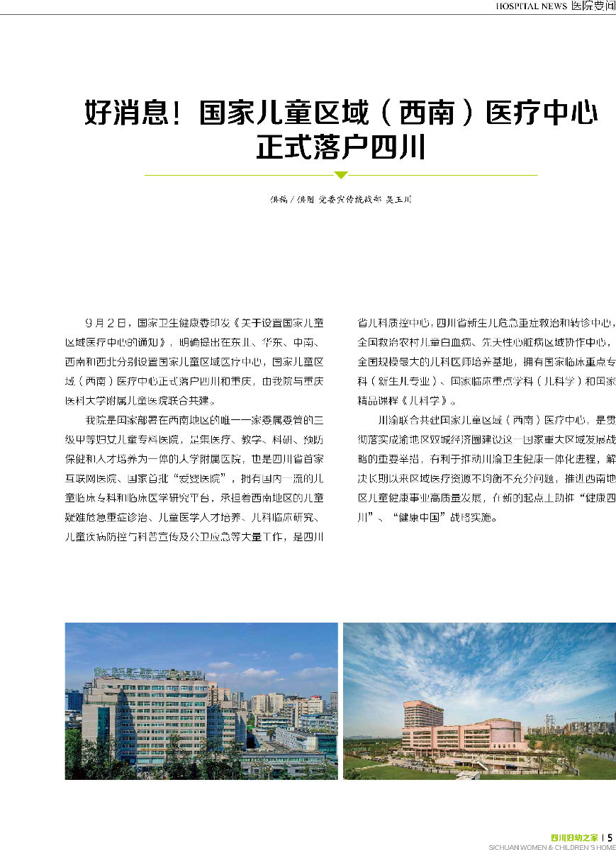 【医院要闻】好消息!国家儿童区域(西南)医疗中心正式落户四川