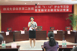 2012年5月10日下午2:30,为庆祝第100个5.12国际护士节,护理部、工会、团委联合举办了四川大学华西第二医院‘为民服务,创先争优’——首届安全输液知识竞赛。医院党委王素霞书记、王红静副书记、郄明蓉副院长及相关职能科室主任出席了本次比赛。院长母得志教授因出差未能...