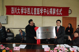 2012年3月1日下午16时, 四川大学华西儿童医学中心正式成立,揭牌仪式在华西行政楼举行。四川大学常务副校长李虹教授,医学管理处杨志刚处长、韩宇副处长,华西医院院长石应康教授、副院长程南生教授,华西第二医院党委书记王素霞研究员、常务副院长母得志教授、副院长刘瀚旻教授、...