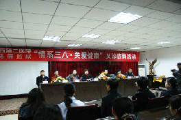 2012.3.2日在华西第二医院医院党委王素霞书记、王红静副书记、郄明蓉副院长带领下,我院妇科、产科、生殖内分泌、儿科、病理科以及党办、宣传等部门负责人、工作人员一行19人来到峨眉雷马屏监狱,开展情系三八服务基层大型义诊咨询活动。为长期战斗在工作第一线的女狱警们送上一份节...
