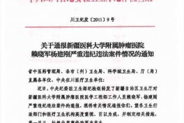 关于通报新疆医科大学附属肿瘤医院赖晓军杨建刚严重违纪违法案件情...
