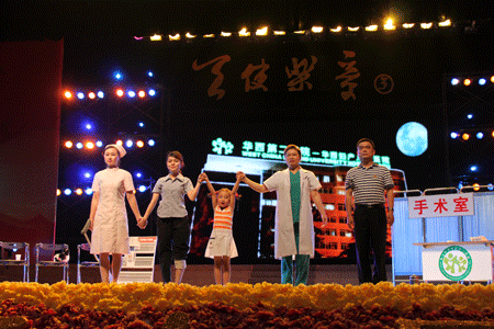 根据我院高雪梅教授收养地震“孤儿”——笑笑,并尽心呵护,全力帮助其母子的感人事迹创作的独幕剧《天使之爱》,由我院医护人员演出,真实展现了我院医务人员在抗震救灾中表现出来的大爱精神。演员们将母子情演绎得淋漓尽致,感染了现场嘉宾和观众,多次赢得雷鸣般的掌声。值得表扬的是参加演出的全体演职人员白天忙临床工作,晚上和周末放弃休息时间加班加点进行排练,川大艺术学院编导专业的研究生编创团队和华西幼儿园小朋友钟灵逸及其父母也全力以赴为这次成功演出做出了贡献。