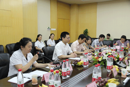 2011年8月19上午,在卫生厅医政处任向平处长及农卫处雷激处长陪同下,由卫生部医政司医疗处丁雅明、首都医科大学附属北京儿童医院郑胡镛教授及复旦大学附属儿童医院朱雅卿主任组成的卫生部督导组来我院进行了关于农村儿童白血病救治工作的督导检查,母得志院长、王素霞书记、郄明蓉副院长等医院领导参加了汇报会议。