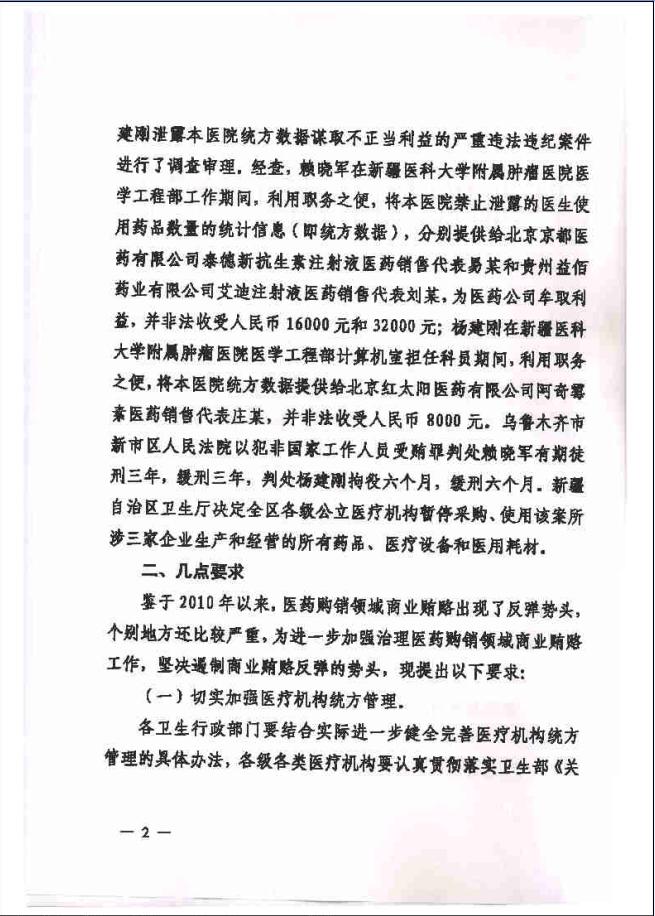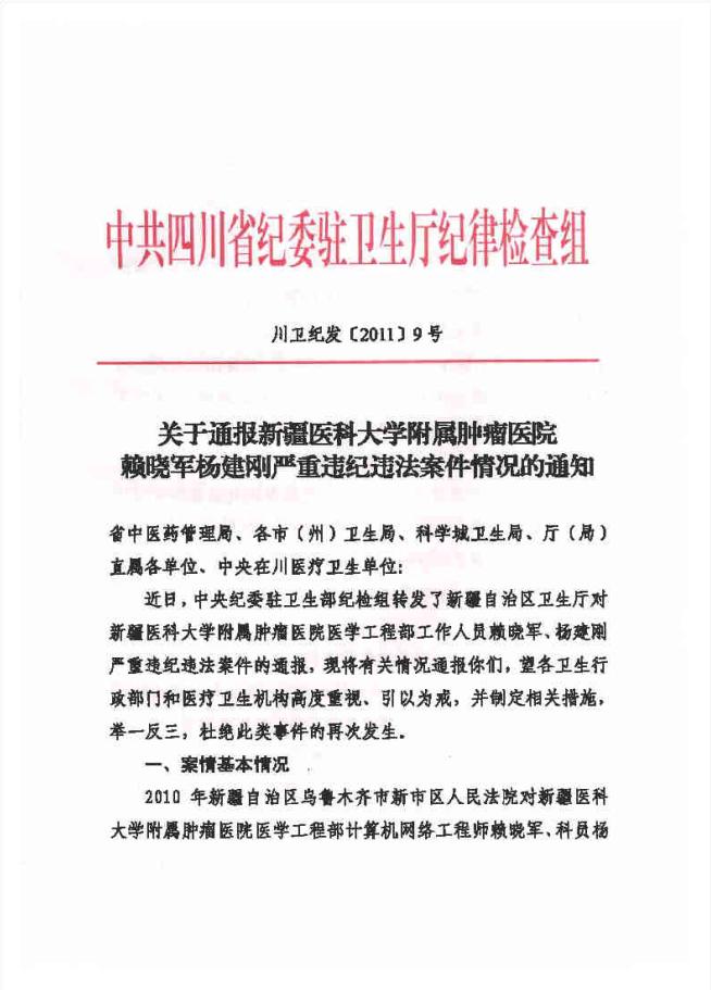 关于通报新疆医科大学附属肿瘤医院赖晓军杨建刚严重违纪违法案件情况的通知