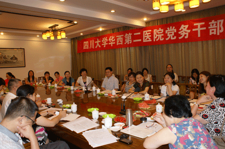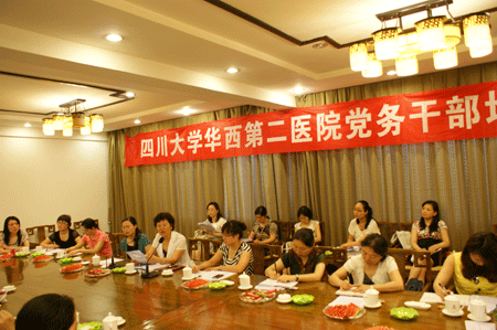 2011年6月18日,为进一步加强党的建设,提高党务干部的工作能力和水平,医院党委在华阳锦秀城举办了华西第二医院党务干部培训会,全院党支部书记、支部委员、党务部门工作人员一行35人参加了会议,会议特别邀请了党外人士,院长母得志教授,会议由党委书记王素霞主持。