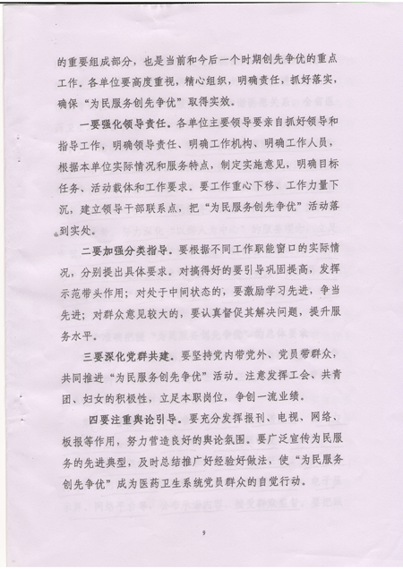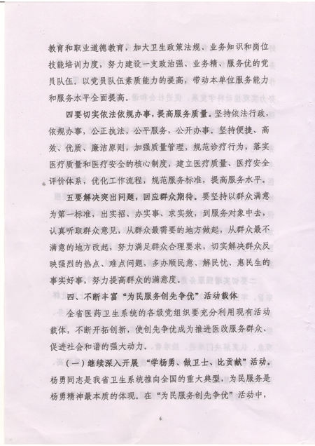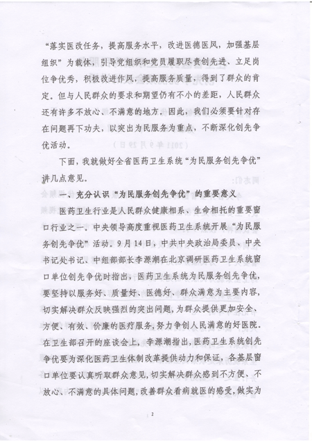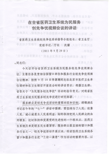 在全省医药卫生系统为民服务创先争优视频会议的讲话