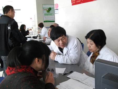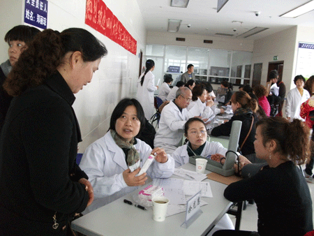 在妇产科门诊大厅里,有许多病人和家属已早早的在等候。他们得知有华西第二医院的妇产科前来坐诊,很早就出门来到医院,还有在华西二院看过病的病人得知消息也赶到了现场;她们见到们都非常高兴,有序地坐到们的诊桌前,拿出门诊病历和检查资料就诊,每一个老教授面前都有不少的病人在等着。面对有着丰富诊疗经验的医师们,每个病人都有许多问题要问。们认真翻阅每位病人的病历和所检查的资料,对她们所提出的问题,都耐心、通俗易懂地给予了解答,直到她们理解为止;有需要治疗的还开了药品处方并告诉病人应怎样合理、正确地用药;对疑难病人专门安排到我院接受进一步检查,并告诉病人的门诊时间。同时,我院对再生育病人开设“绿色通道”。