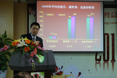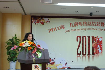 儿科教研室主任、院长母得志教授从医德医风、医疗工作、学科建设、科研水平、人才队伍、所获荣誉六个方面对2010年儿科工作进行了总结。2010年,儿科在空间及人员几乎无增长的情况下,在医院党政的领导下,在儿科全体医护职工的共同努力下,各项指标再创新高。年门急诊量达63万人次,其中急诊量达15.8万人次,门诊达47.2万人次。《儿科学》获国家精品课程,普儿二成功申报并获得卫生部省卫生厅血液透析资格,血液科获得非血缘异基因造血干细胞移植准入资质,成为四川省唯一获得此资质的儿科医疗单位,是中华骨髓库认可的移植医院。心血管科与产科联合经胎盘药物转运治疗宫内胎儿快速性心律失常及胎儿心力衰竭取得成功。
