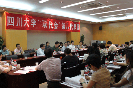 2011年4月28—29日四川大学第三届教代会暨第二届工代会第一次会议在望江校区五教演播厅隆重召开,我院30名校“双代会”代表在团长王素霞书记的带领下参加了会议。