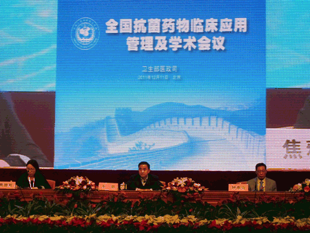 2011年12月11日,卫生部医政司在北京隆重召开“全国抗菌药物临床应用管理及学术会议”。本次会议是卫生部对全国30个省、市、自治区308家医疗机构进行抗菌药物专项整治活动后的总结会和经验交流、专业培训会。会议采取现场会议和视频会议相结合的方式,在北京设主会场,天津、辽宁、上海、江苏、浙江、河南、湖北、广东、四川、山西设分会场。北京会场到会达500余人,四川省卫生厅赵万华副厅长、焦云智处长等领导出席四川分会场会议。我院因抗菌药物专项整治工作取得突出成绩,卫生部指定母得志院长前往北京主会场做全国大会报告,进行管理经验报告。按卫生部工作部署,郄明蓉副院长、药学部张伶俐主任、检验科江咏梅主任、院感科邓建军主任参加了北京主会场的现场会议。