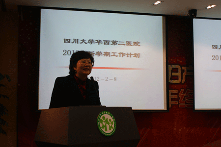 会上,母得志院长对2012年工作进行了部署。第一是医疗工作,将以“提高医疗质量,保障医疗安全为主题”,继续开展“一个抗菌药物专项整治,二项工程即国家临床重点专科建设和优质护理服务活动”,达到“三好一满意”;积极创建百家优质医院;进一步推进单病种质量控制、临床路径和医疗新技术的开展;积极迎接卫生部“三甲”医院等级复评;第二是教学工作,加强对研究生的培养;争取培养1-2名校级教学名师;加强国家级继教项目的申报。第三是科研工作,积极组织申报国家级自然科学基金等各级各类课题的申报;进一步完善西部妇幼医学研究院的科研管理体系;启动院内临床科研资助计划,以科室为单位推动临床多中心研究。学科建设工作,要加强妇科、产科、儿科新生儿专业国家临床重点专科建设项目的管理,认真做好项目实施,用好经费,争取取得实效;积极做好迎接教育部重点学科的复评工作;认真准备迎接教育部重点实验室的评审,加强教育部重点实验室和创新团队的建设;整合学科发展,积极争取进入学校985平台;第四是人才培养工作,积极推行青年教师全覆盖工程;积极推行的引进工作,力争“0”的突破;争取培养新世纪人才1-2名;第五是信息及后勤保障工作,启动卫生部《四川大学华西第二医院西部妇幼医疗保健区域协同核心平台建设项目》的实施工作,继续全面推行预约挂号并开通诊间缴费服务;启动医院综合运营系统;第六是医院文化建设工作,巩固医院文化和科室文化建设;第七是医疗空间拓展工作,积极与“宋庆龄华西妇女儿童医院”的投资商谈判,签订补充协议等;积极争取卫生部、省市政府的大力支持,在四川大学的领导下全力推进华西第二医院锦江院区建设项目的实施。