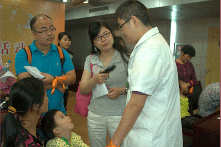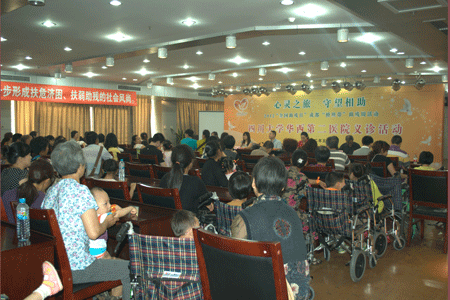 在第22个全国助残日来临之际,华西第二医院儿童神经发育与康复首家发起助残行动,与成都市残联再次携手为残疾儿童做义诊活动,也是“橙丝带”助残活动周的第一家响应单位。本次活动得到了华西第二医院党政领导班子的高度重视和大力支持,儿科党支部的支部书记、门诊办公室主任陈娟教授放下手中繁忙的工作一同义诊。医院儿科名老李炜如教授、普儿一护士长陈凤等也不辞辛苦前来为孩子们作健康咨询和医疗照顾。儿童神经发育与康复王秋、李娜、马丹为脑瘫儿童作功能、作业、语言等训练指导和康复咨询。