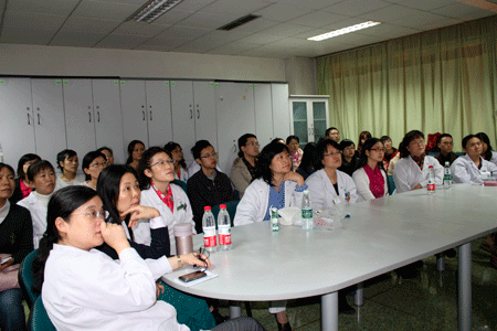 胎儿医学作为一门新兴亚专业,近年在国内外受到了极大的关注和重视,临床医生亦逐步接受了胎儿也是一个独立病人的观念。随着产前诊断技术的长足进步,许多胎儿疾病的宫内及后续治疗的问题摆在了产科、儿内科、儿外科医师的面前,而这些问题的处理,涉及多学科的团队协作,基于目前的现状以及为提高临床决策及治疗的水平,产科胎儿医学亚专科于2011年11月3日及2012年3月27日分别举办了“先天性膈疝的多学科诊治”及“胎儿短肢畸形的多学科诊治” 专题讨论会。专题讨论会由产科刘兴会主任、余海燕副主任主持,邀请了超声科、小儿外科、新生儿科、影像科及儿童保健科的多位及相关科室的各级医师参加,围绕着相关专题,杨太珠主任、蒋小平教授、宁刚教授、杨速飞教授及产科住院医师何镭、李乔等会前就相关专题认真准备,查阅了大量国内外相关文献及资料并结合自身临床实践做了精彩的发言,各级医师就临床工作中相关专题所遇到的常见及疑难问题展开了热烈的讨论,整个讨论会气氛异常活跃、生动,各级医师踊跃发言,一致反应收获很大。为促使我院胎儿医学的发展,产科胎儿医学亚专科今后将继续定期举行多科的临床学习交流,为各级医师搭建一个学术及学习的平台。(撰稿人 李乔 余海燕 摄影 彭玲玲)