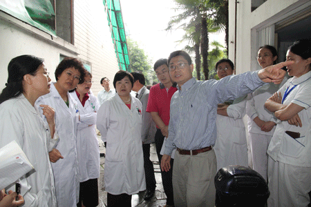 2012年5月4日上午9点30分,医院全体院领导、院长助理及院办、医务、门诊、设备、后勤、保卫、党办、财务、病案、护理、普儿一等科室负责人对医院辅助用房一楼弱电间、老行政楼4-5楼、原供应室二层小楼进行了现场办公。母得志院长在办公现场指出,第一,要按照成都市消防支队的消防规划要求,在5月底前必须拆除活动板房。第二,涉及科室要站在全院的高度,克服暂时的困难,配合和服从医院的重新布局。第三,各相关科室在确定搬迁方案后需尽快完成搬迁工作。