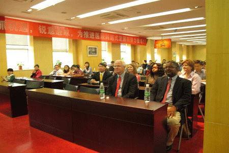 2012年4月16日,美国弗罗里达大学医学院儿科主任Dr. Qiu一行来我院进行为期3天的访问,随行人员还有Dr. Bryant、Dr. Wood教授以及两名三年级的住院医师。
