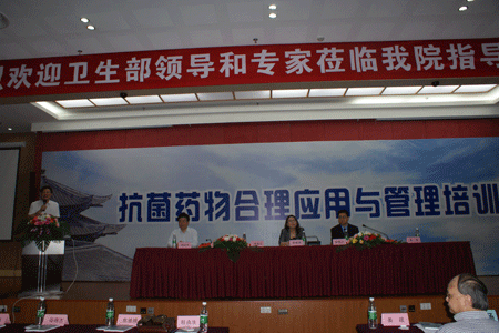 为深入推进我院抗菌药物临床合理应用管理,更好地执行卫生部2012年全国抗菌药物临床应用专项整治活动方案,2012年5月5日上午,我院与四川大学华西医院共同举办了“抗菌药物合理应用与管理专项培训”,培训邀请卫生部医政司焦雅辉处长进行“2012年全国抗菌药物临床应用专项整治活动方案”解读,同时邀请复旦大学附属中山医院胡必杰教授进行“如何正确看待外科手术预防性抗菌药物应用”的讲座。母得志院长代表华西医院和华西第二医院致欢迎辞,华西医院程南生副院长主持会议。我院299名医务人员参加了此次专项培训。