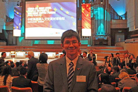 在论坛内外,李金科医生尽可能向中欧学者介绍四川大学的悠久历史和辉煌成就,同时也深刻感悟到中欧教育文化交流势必深入,四川大学应该抓住机遇,深化与欧洲的合作交流。正如刘延东委员在论坛上所讲,未来几年,中方将向欧洲提供3万个奖学金名额,希望四川大学能借985和211身份,吸引更多欧洲青年来学习。(供稿、摄影李金科)