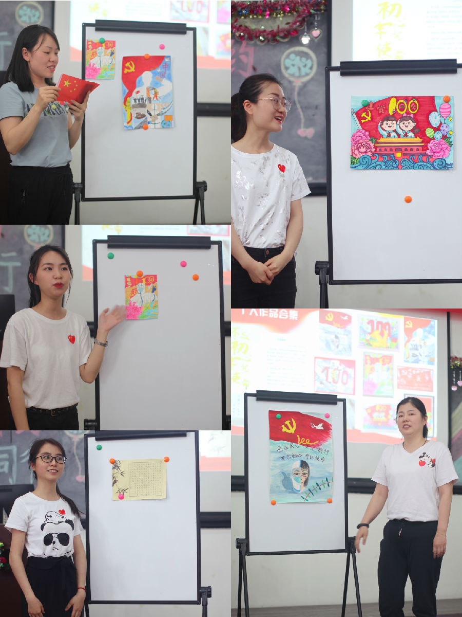 100年来在党的领导下医疗卫生事业改革发展也经历了光辉历程,为此我们向全科老师征集了庆祝建党100周年主题作品,用艺术作品去展示医务工作者艰苦奋斗故事、先进人物事迹、伟大的抗疫精神,例如吴静老师书法作品《白衣天使的杰作 冰心》借冰心优美的诗歌表达对护士的崇高敬意;刘露文老师的剪纸作品《百年恰是风华正茂》剪出了孩子、科学家、工人、军人的形象,映照着共产党人的初心宗旨和使命担当;黄代希老师的绘画作品画出了一位抗疫医务者穿上防护服和脱下防护服的对比照,表达了对抗疫人员由衷的崇敬。以上都表达了我们全体人员作为新时代医务工作者护佑人民健康的决心。