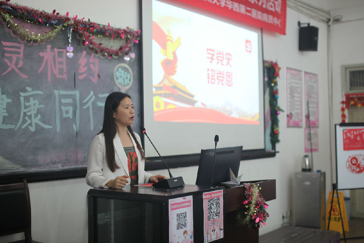 随后,活动在表演中迎来高潮,由随访小组合唱表演《唱支山歌给党听》、入院和健教小组表演手指舞《不忘初心》,精彩的表演让大家从歌声和舞蹈中再次追忆过去每一位共产党员艰苦奋斗的历程、伟大的革命信念。