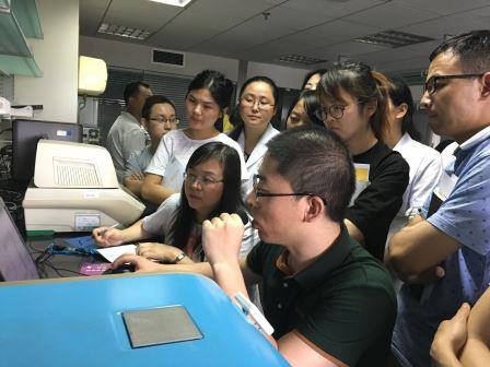 本次培训分为理论及上机操作两部分,上午10点进行了理论知识的培训及技术研讨,参会人员认真听讲,积极发言,就流式细胞术检测相关的样本制备,染料选择,数据分析等内容进行了交流与学习。下午在公共实验室进行了上机实践活动,技术人员现场演示并讲解了流式细胞仪应用的操作流程,并针对结果分析等方面与师生们进行了深入的探讨。