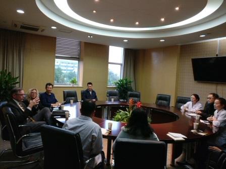 双方在五楼会议室进行了亲切友好的会谈。本次会议由医院常务副院长母得志教授主持,母院长对Wilson教授的到访表示了热烈的欢迎,并简要介绍了我院参会的相关临床。随后,Wilson教授就我院罕见性疾病临床诊治的现状、基因治疗技术的应用等方面的情况与我院进行了深入、广泛的交流。