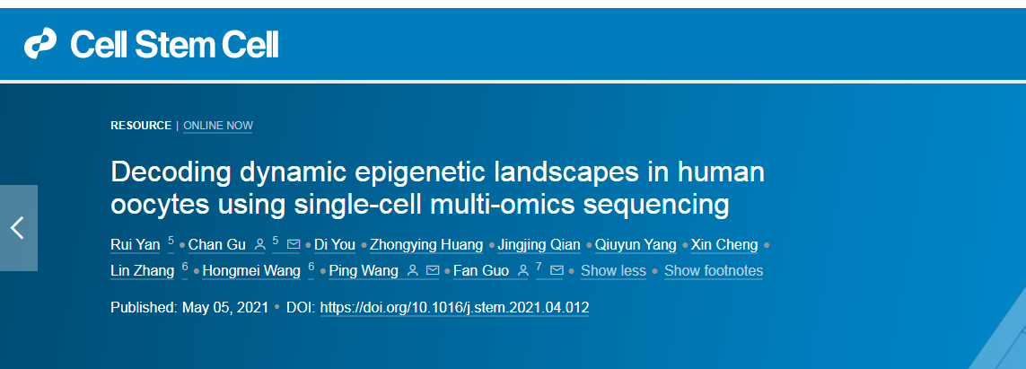 近日,华西第二医院王平教授团队与郭帆研究员在Cell Press旗下期刊Cell Stem Cell上在线发表了题为“Decoding Dynamic Epigenetic Landscapes in Human Oocytes UsingSingle-cell Multi-omics Sequencing”的研究论文(https://www.cell.com/cell-stem-cell/fulltext/S1934-5909(21)00169-7#%20)。该研究通过利用单细胞多组学测序技术,首次揭示了人卵细胞DNA甲基化的建立过程和分子调控特征。