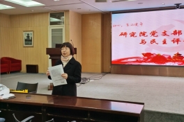 2020年12月25日,研究院党支部采用线上会议方式召开学习专题组织生活会。在党支部书记林玲同志的组织下,全体党员、预备党员集中学习了党的十九届五中全会会议精神及周永开等7名全国优秀共产党员先进事迹,掀起了学习热潮。会上,宣传统战委员孙华钦同志解读《中国共产党第十九届中央...